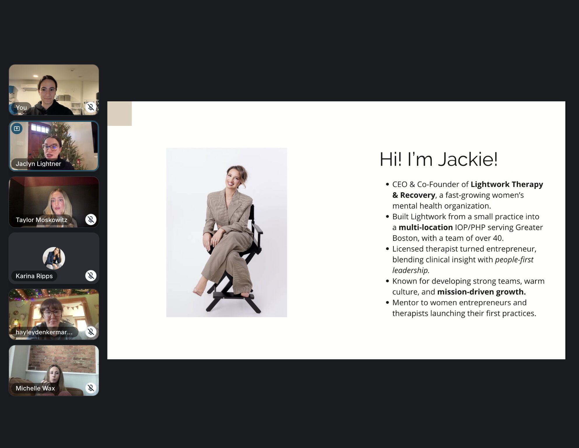 Jackie is a trusted voice in women’s mental health, professional resilience, and leadership development. She’s the Founder & CEO of Lightwork Therapy & Recovery, where she’s helping women reclaim their power through compassionate, evidence-based care.